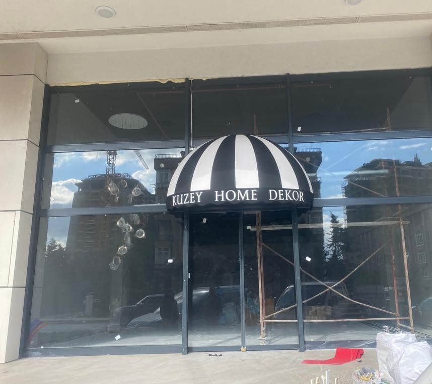 Karpuz tente, özellikle mağaza vitrinlerinde ve kafe-restaurant girişlerinde sıkça kullanılır. Çünkü göze çarpan formu sayesinde uzaktan bile dikkat çeker, böylece işletmelere reklam açısından da avantaj sağlar. Üzerine firma adı ya da logo işlenerek tente aynı zamanda tabela görevi görebilir. Bu özelliği sayesinde hem gölgelik hem de marka görünürlüğünü artıran bir araç haline gelir.
